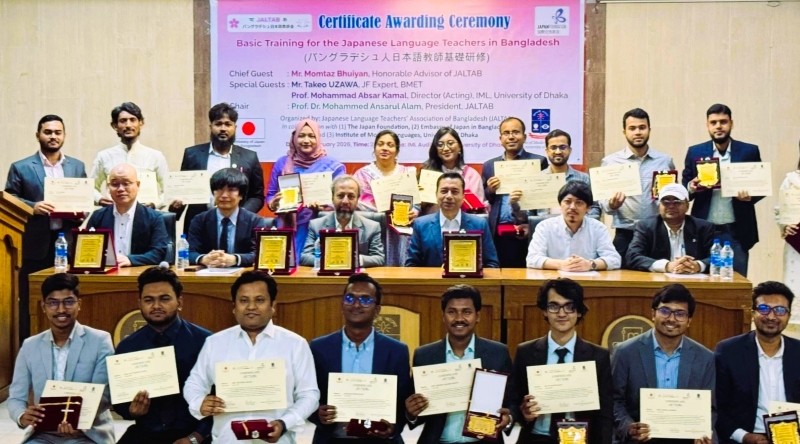 বাংলাদেশ জাপানি ভাষা শিক্ষক সমিতির (জালটাব) আয়োজনে দেশের বিভিন্ন প্রান্তের জাপানি ভাষা শিক্ষকদের ৭২ ঘণ্টাব্যাপী ‘জাপানি ভাষা শিক্ষক প্রশিক্ষণ কোর্স’ শেষ হয়েছে।