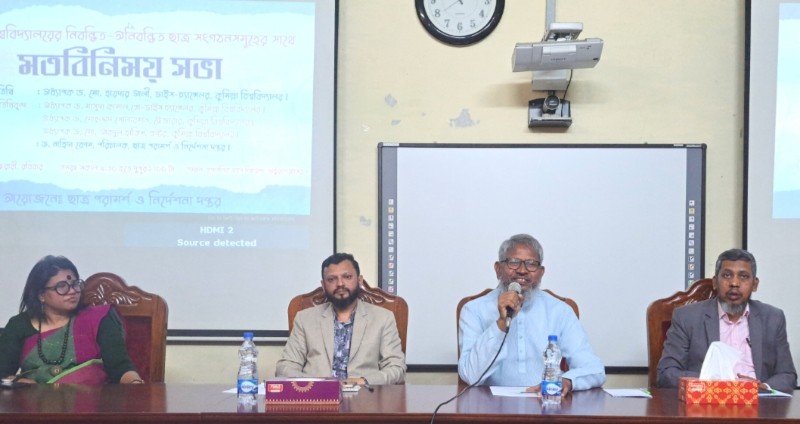 সভায় সভাপতির বক্তব্যে ছাত্র পরামর্শ ও নির্দেশনা দপ্তরের পরিচালক ড. নাহিদা বেগম বলেন, 'বিশ্ববিদ্যালয়ের সংগঠনগুলোকে আরও সক্রিয় ও প্রাণবন্ত করা এবং প্রশাসনের সঙ্গে সৌহার্দ্যপূর্ণ সম্পর্ক গড়ে তোলার লক্ষ্যে আজকের এই মতবিনিময় সভার আয়োজন করা হয়েছে। এই সভার মাধ্যমে বিভিন্ন সংগঠন তাদের দাবি, কার্যক্রম, পরিকল্পনা ও ভবিষ্যৎ উদ্যোগ তুলে ধরছে, যা সংগঠনগুলোর কার্যকর ভূমিকা পালনে সহায়ক হবে।'