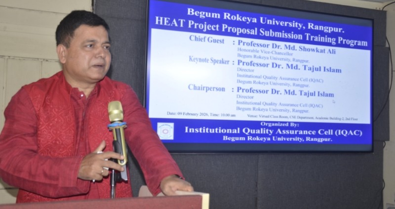 বেগম রোকেয়া বিশ্ববিদ্যালয়, রংপুর-এ হিট শীর্ষক প্রশিক্ষণ কর্মসূচি অনুষ্ঠিত হয়েছে। আজ রবিবার (০৯ ফেব্রুয়ারি ২০২৬) সকালে বিশ্ববিদ্যালয়ের একাডেমিক ভবন-২ এর কম্পিউটার সায়েন্স অ্যান্ড ইঞ্জিনিয়ারিং বিভাগের ভার্চুয়াল ক্লাসরুমে ইন্সটিটিউশনাল কোয়ালিটি অ্যাসিউরেন্স সেল (আইকিউএসি)-এর আয়োজনে এ প্রশিক্ষণ কর্মসূচিতে প্রধান অতিথি হিসেবে উপস্থিত ছিলেন বিশ্ববিদ্যালয়ের উপাচার্য প্রফেসর ড. মোঃ শওকাত আলী।