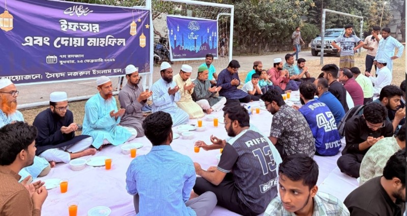 সৈয়দ নজরুল ইসলাম হলের প্রভোস্ট মো. মোতাকাব্বির হাসান তমাল বলেন, রমজান মাস মূলত ত্যাগের মাস। ইফতারের সময় সবচেয়ে বড় শিক্ষা হলো, এখানে বিভিন্ন ব্যচের ছোট বড় সকলে মিলেমিশে একসঙ্গে বসে ইফতার করি। সেই সমতার অনুভূতি অত্যন্ত গুরুত্বপূর্ণ। আমরা আল্লাহ তায়ালার কাছে দোয়া করি, যেন এই সমতার শিক্ষা সবার মধ্যে ছড়িয়ে পড়ে। এতে দুনিয়ার জীবন সহজ হয় এবং আখিরাতের জীবনও সমৃদ্ধ হয়। এটিই আমাদের মূল উদ্দেশ্য এবং চাওয়া।