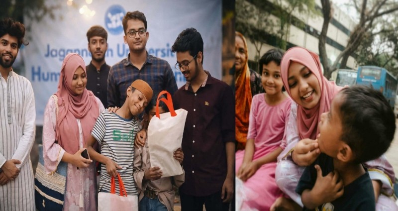 পবিত্র মাহে রমজান উপলক্ষে সুবিধাবঞ্চিত পথশিশু ও ছিন্নমূল মানুষদের নিয়ে ইফতার ও ঈদ উপহার বিতরণের এক মানবিক উদ্যোগ গ্রহণ করেছে জগন্নাথ বিশ্ববিদ্যালয় (জবি) হিউম্যান রাইটস সোসাইটি। ‘প্রজেক্ট স্মাইল ২০২৬’-এর আওতায় এবার প্রায় ৫০ জন পথশিশু ও ছিন্নমূল মানুষের মাঝে এই ঈদ আনন্দ ছড়িয়ে দেওয়া হয়েছে।