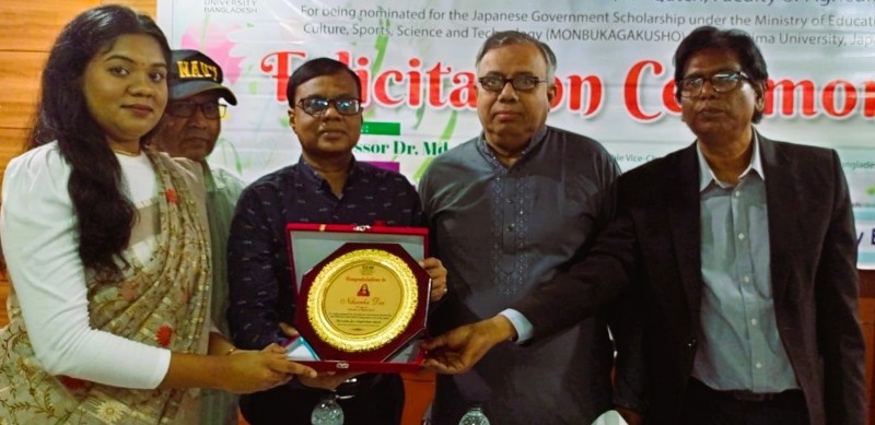 সোমবার (৩০ মার্চ ২০২৬) দুপুরে বিশ্ববিদ্যালয়ের অডিটোরিয়ামে এ সংবর্ধনা অনুষ্ঠানের আয়োজন করা হয়। তিনি জাপানের Kagoshima University তে উচ্চশিক্ষা গ্রহণের সুযোগ পেয়েছেন।