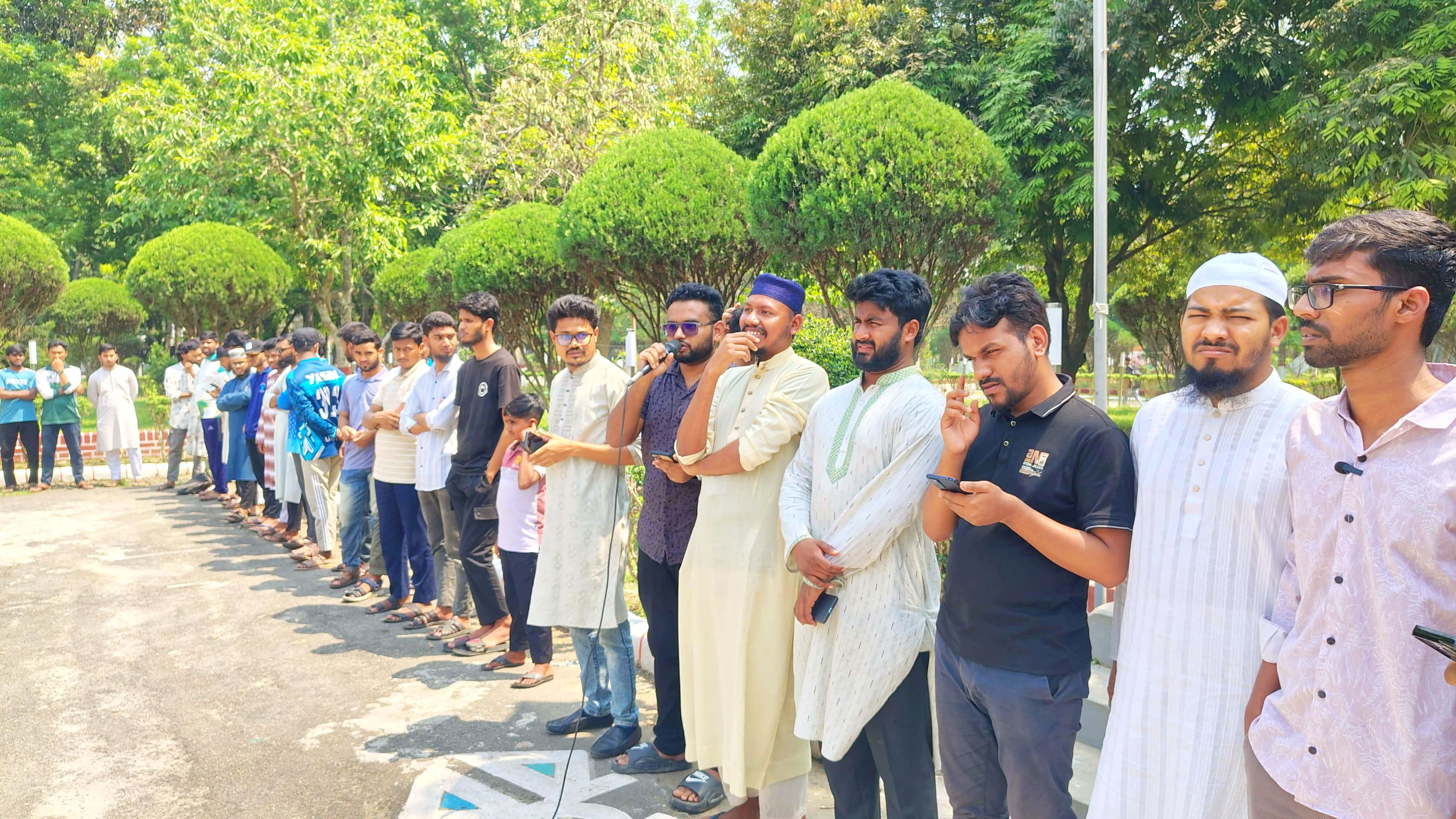 বুধবার (১ এপ্রিল) বেলা ১২টার দিকে বিশ্ববিদ্যালয়ের প্রশাসন ভবন চত্বরে বৈষম্যবিরোধী ছাত্র আন্দোলন বিশ্ববিদ্যালয় শাখার নেতৃত্বে এ কর্মসূচি অনুষ্ঠিত হয়।