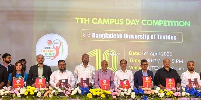 বাংলাদেশ টেক্সটাইল বিশ্ববিদ্যালয়ে (বুটেক্স) টেক্সটাইল টুডের উদ্যোগে টেক্সটাইল ট্যালেন্ট হান্টের দশম আসরের ক্যাম্পাস ডে অনুষ্ঠিত হয়েছে। সোমবার (৬ এপ্রিল) দুপুর ১টা ৩০ মিনিটে বিশ্ববিদ্যালয়ের অডিটোরিয়ামে শুরু হওয়া অনুষ্ঠানে শিক্ষার্থী, শিক্ষক ও দেশের টেক্সটাইল খাতের শীর্ষ পর্যায়ের অতিথিরা উপস্থিত ছিলেন।