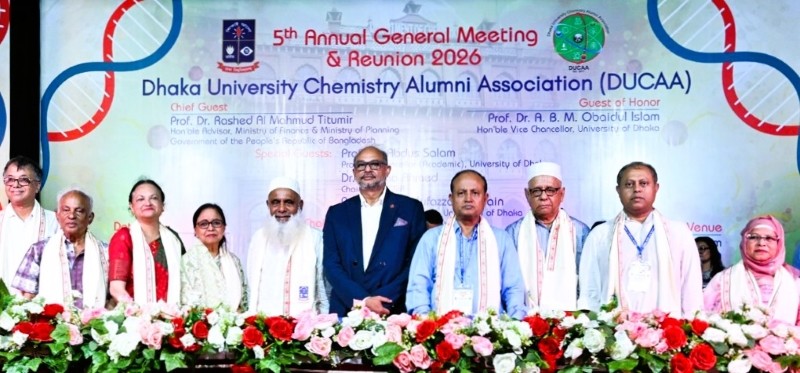 ঢাকা বিশ্ববিদ্যালয় কেমিস্ট্রি অ্যালামনাই অ্যাসোসিয়েশনের উদ্যোগে ৫ম বার্ষিক সাধারণ সভা ও পুনর্মিলনী শনিবার (১৮ এপ্রিল ২০২৬) বিশ্ববিদ্যালয়ের ছাত্র-শিক্ষক কেন্দ্র (টিএসসি) মিলনায়তনে অনুষ্ঠিত হয়েছে। অনুষ্ঠানে বিশ্ববিদ্যালয়ের উপাচার্য অধ্যাপক ড. এ বি এম ওবায়দুল ইসলাম সম্মানিত অতিথি হিসেবে উপস্থিত ছিলেন।