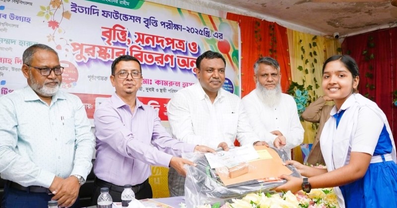 ইত্যাদি ফাউন্ডেশন বৃত্তি পরীক্ষা ২০২৫-এর বৃত্তি, সনদপত্র ও পুরস্কার বিতরণ অনুষ্ঠান আজ শনিবার (১৮ এপ্রিল ২০২৬) নোয়াখালীর বেগমগঞ্জে শহিদ আমান উল্যাহ পাবলিক উচ্চ বিদ্যালয় অডিটোরিয়ামে অনুষ্ঠিত হয়েছে।