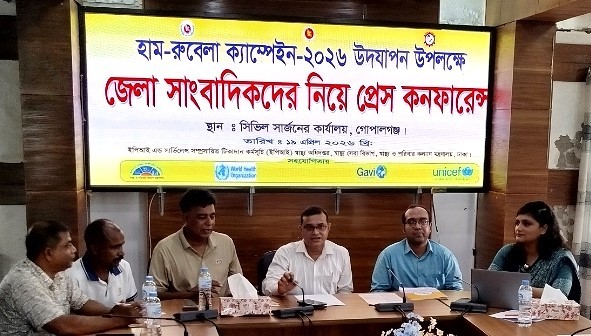 গোপালগঞ্জ জেলায় হাম ও রুবেলা প্রতিরোধে তিন সপ্তাহব্যাপী টিকাদান কর্মসূচি শুরু হয়েছে। রোববার (২০ এপ্রিল) থেকে শুরু হওয়া এ কর্মসূচির আওতায় জেলার ৬ মাস থেকে ৫ বছরের কম বয়সী সব শিশুকে এক ডোজ এমআর টিকা দেওয়া হচ্ছে।