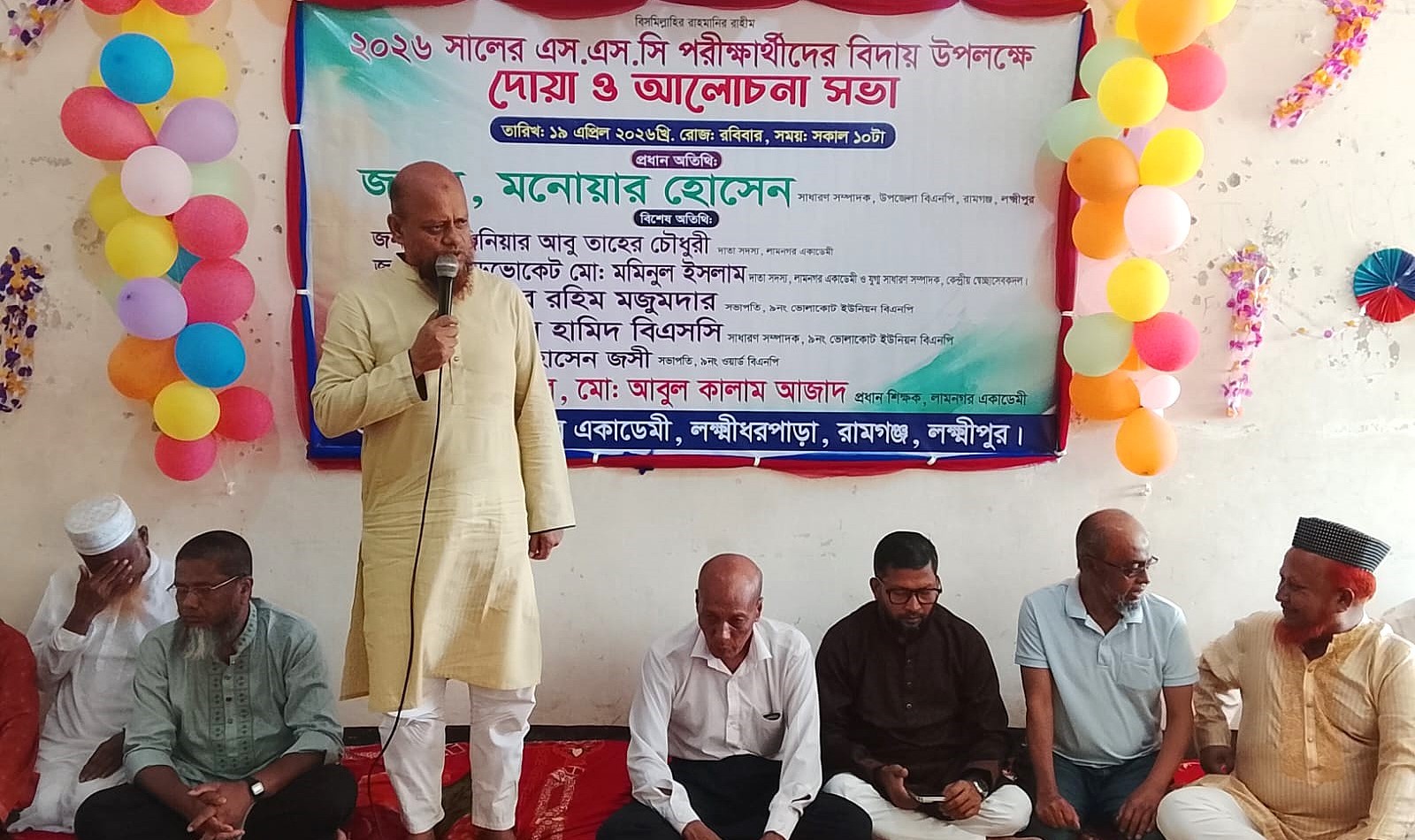 লক্ষ্মীপুর জেলার রামগঞ্জ উপজেলার স্বনামধন্য শিক্ষা প্রতিষ্ঠান লামনগর একাডেমী-তে ২০২৬ সালের এসএসসি পরীক্ষার্থীদের বিদায় উপলক্ষে মিলাদ ও দোয়া মাহফিল অনুষ্ঠিত হয়েছে।