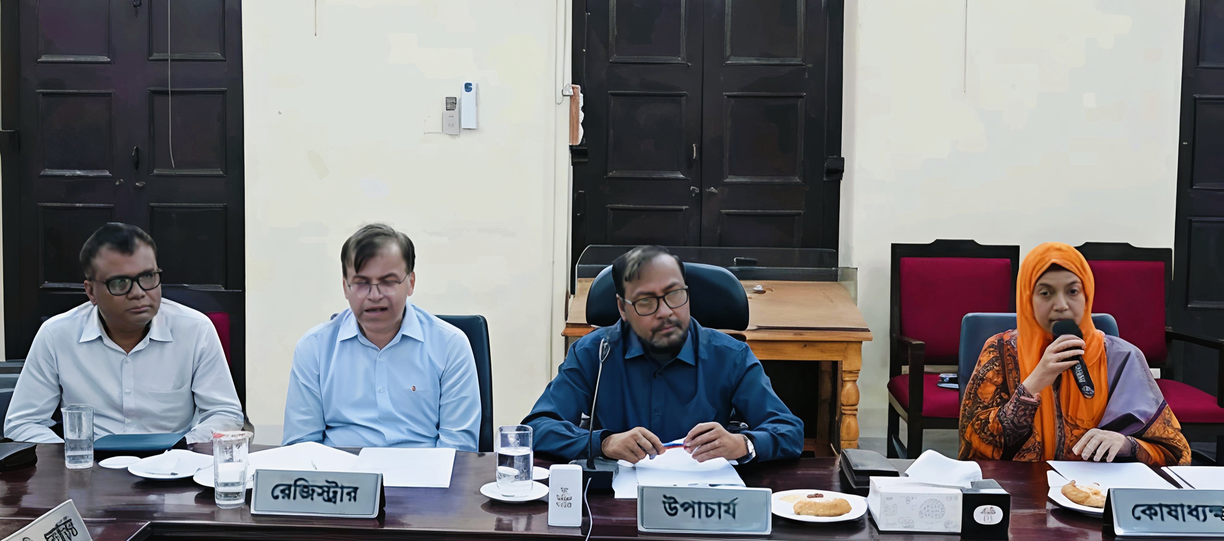 উপাচার্য অধ্যাপক ড. মো. রইছ উদ্দীনের সভাপতিত্বে তাঁর কার্যালয়ের কনফারেন্স রুমে অনুষ্ঠিত সভায় সরকারের নির্দেশনা অনুসরণ করে এ বিষয়ে আলোচনা করা হয়। গণপ্রজাতন্ত্রী বাংলাদেশ সরকারের জনপ্রশাসন মন্ত্রণালয়, শিক্ষা মন্ত্রণালয় এবং বাংলাদেশ বিশ্ববিদ্যালয় মঞ্জুরী কমিশনের নির্দেশনার প্রেক্ষিতে এ সভা আহ্বান করা হয়।