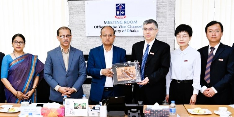 চীনের ইউনান ইউনিভার্সিটির প্রেসিডেন্ট অধ্যাপক মা ওয়েনহুই বুধবার (২২ এপ্রিল ২০২৬) ঢাকা বিশ্ববিদ্যালয়ের উপাচার্য অধ্যাপক ড. এ বি এম ওবায়দুল ইসলামের সঙ্গে তাঁর কার্যালয়ে সৌজন্য সাক্ষাৎ করেছেন।