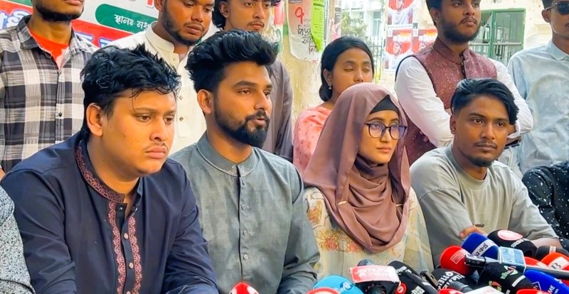 বৃহস্পতিবার বিকেলে ঢাকা বিশ্ববিদ্যালয়ের মধুর ক্যানটিনের সামনে আয়োজিত এক সংবাদ সম্মেলনে সংগঠনটির কেন্দ্রীয় মুখপাত্র সিনথিয়া জাহিন আয়েশা এ দাবি জানান। অভিযুক্তরা হলেন,বৈষম্যবিরোধী ছাত্র আন্দোলনেরে কেন্দ্রীয় সভাপতি রিফাত রশিদ, সাংগঠনিক সম্পাদক মঈনুল ইসলাম, মুখ্য সমন্বয়ক হাসিব আল ইসলাম।