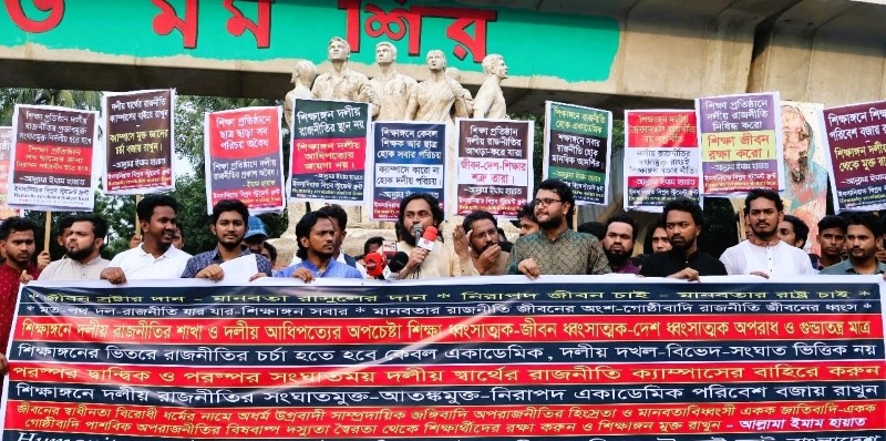 প্রতিষ্ঠানে কোনো রাজনৈতিক দলের ছাত্র সংগঠনের দলীয় সাংগঠনিক মাঠের রাজনীতির কর্মসূচি ভয়ংকর ধ্বংসাত্মক যা কেবল গুন্ডাতন্ত্র প্রতিষ্ঠিত করে প্রতিষ্ঠানকে ধ্বংস করে।