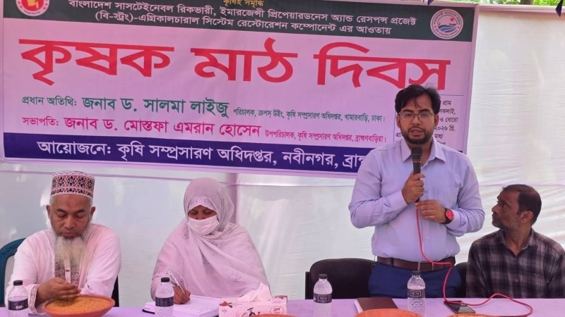 বাংলাদেশ সাসটেইনেবল রিকভারি, ইমার্জেন্সি প্রিপেয়ার্ডনেস অ্যান্ড রেসপন্স প্রজেক্ট (বি স্ট্রং)-এর আওতায় ব্রাহ্মণবাড়িয়ার নবীনগর উপজেলার ইব্রাহিম ইউনিয়নে বীজ প্রযুক্তি গ্রাম প্রদর্শনীর ওপর এক বর্ণাঢ্য মাঠ দিবস অনুষ্ঠিত হয়েছে। এতে শতাধিক কৃষকের স্বতঃস্ফূর্ত অংশগ্রহণ লক্ষ্য করা যায়। অনুষ্ঠানে উপজেলা কৃষি অফিসার কৃষিবিদ মো: জাহাঙ্গীর আলম লিটনের সঞ্চালনায় সভাপতিত্ব করেন জেলা কৃষি সম্প্রসারণ অধিদপ্তরের উপপরিচালক ড. মোস্তফা এমরান হোসেন। প্রধান অতিথি হিসেবে উপস্থিত ছিলেন কৃষি সম্প্রসারণ অধিদপ্তরের পরিচালক (ক্রপস উইং) কৃষিবিদ ড. সালমা লাইজু।
