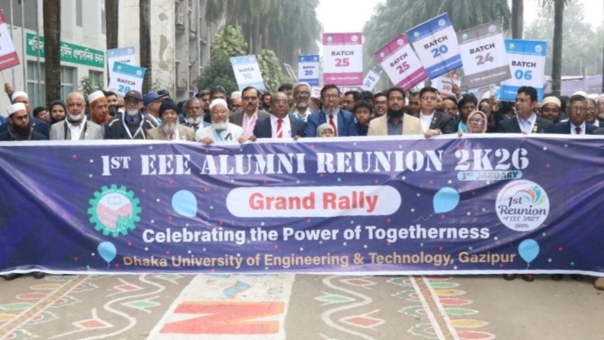 ঢাকা প্রকৌশল ও প্রযুক্তি বিশ্ববিদ্যালয় (ডুয়েট), গাজীপুর-এর ইলেকট্রিক্যাল এন্ড ইলেকট্রনিক ইঞ্জিনিয়ারিং (ইইই) বিভাগের আয়োজনে উৎসবমুখর পরিবেশে অনুষ্ঠিত হলো বিভাগের প্রথম অ্যালামনাই রিইউনিয়ন। বর্ণাঢ্য র্যালি, পায়রা ও বেলুন উড়ানোর মধ্য দিয়ে আজ শনিবার (৩ জানুয়ারি) দিনব্যাপী আয়োজিত এ অনুষ্ঠানের উদ্বোধন করেন প্রধান অতিথি বিশ্ববিদ্যালয়ের মাননীয় উপাচার্য অধ্যাপক ড. মোহাম্মদ জয়নাল আবেদীন।