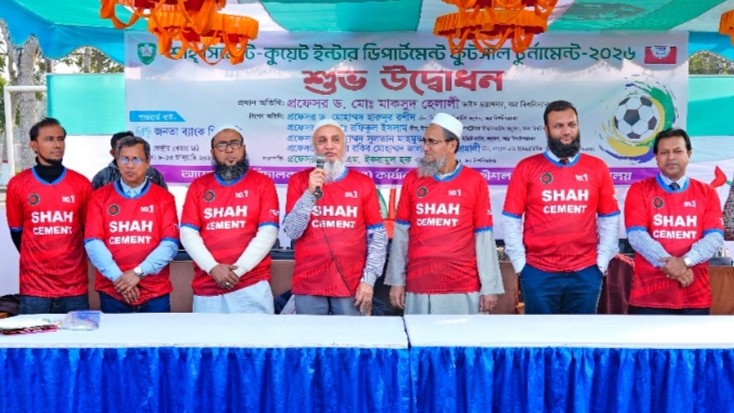 উৎসবমুখর পরিবেশে খুলনা প্রকৌশল ও প্রযুক্তি বিশ্ববিদ্যালয়ে (কুয়েট) প্রথমবারের মতো শুরু হয়েছে ‘শাহ্ সিমেন্ট-কুয়েট ইন্টার ডিপার্টমেন্ট ফুটসাল টুর্নামেন্ট-২০২৬’।