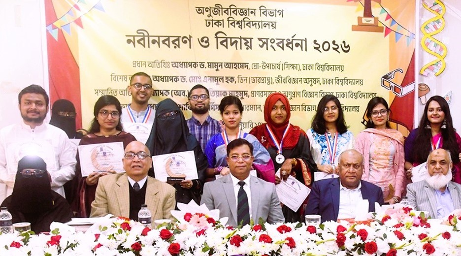 ঢাকা বিশ্ববিদ্যালয় অণুজীব বিজ্ঞান বিভাগের ৩৭ তম ব্যাচের শিক্ষার্থীদের নবীন বরণ ও ৩২ তম ব্যাচের শিক্ষার্থীদের বিদায় সংবর্ধনা আজ ২০ জানুয়ারি ২০২৬ মঙ্গলবার আনোয়ারুল আজিম চৌধুরী লেকচার গ্যালারিতে অনুষ্ঠিত হয়েছে। ঢাকা বিশ্ববিদ্যালয়ের প্রো-ভাইস চ্যান্সেলর (শিক্ষা) অধ্যাপক ড. মামুন আহমেদ অনুষ্ঠানে প্রধান অতিথি হিসেবে উপস্থিত ছিলেন।